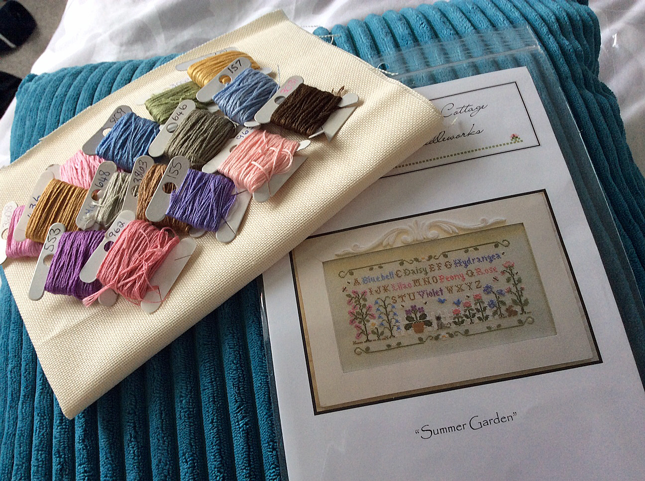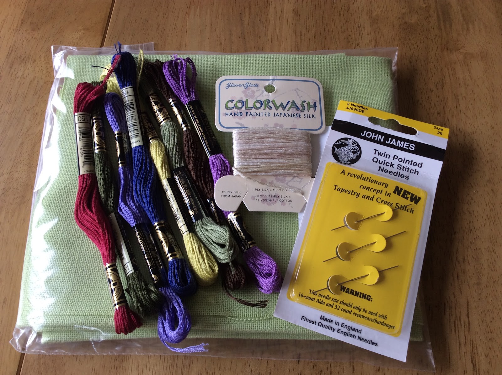 I was missing some DMC threads for my Summer Garden and the fabric, needles and silk thread was for a new start that I started yesterday.