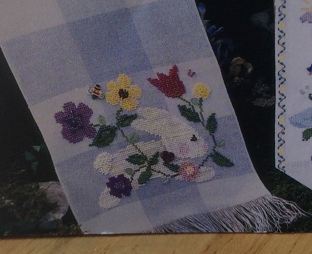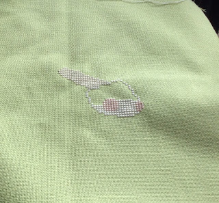 Continuing the Bunny theme this is my new start. It is taken from Mill Hills Hearts and Flowers booklet. The flowers are supposed to be all done with beads and there are a lot of Mill Hill treasures on the design but I need to go with what I have in my stash. Sorry about the poor photo the fabric is actually lime green.