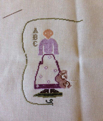 The only other stitching I have been doing is a little progress on my Curly Q stitch-a-long with Sally and Mouse. I really need to give her some hair as she is starting to freak me out..lol.