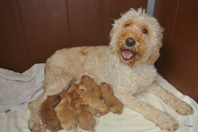Can you believe it I've got happy news to share. Our darling puppy was born on Wednesday evening. This is him with his Mum Pippa , brother and seven sisters. There were only two boys in the litter. One cream and one red. You can see Cupar (dark coloured puppy) on the left off the picture. We need to wait 5 weeks before we can go visit him and then another 4 weeks before we get to bring him home. It;s going to be a long 9 weeks.